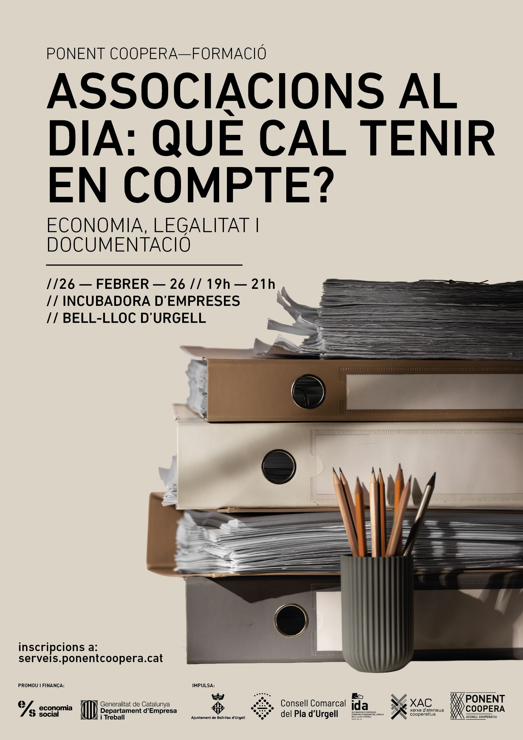 Formació dirigida a totes les associacions que vulguin entendre, de manera clara i senzilla, quines són les seves obligacions legals i documentals i a l’hora, comprendre les obligacions tributàries i com estructurar l’organització econòmica.